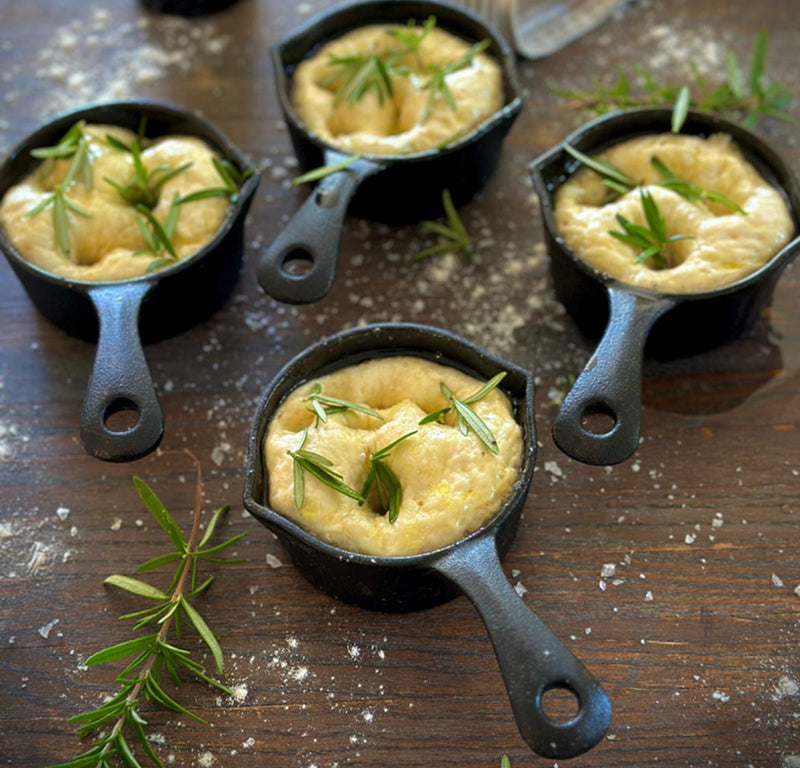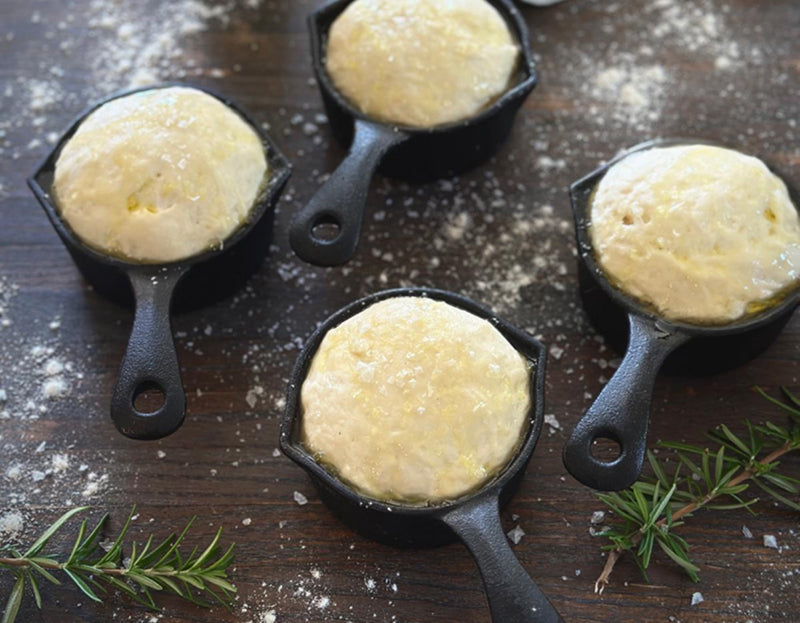 Divide the dough into 4 balls. Brush the bottom and sides of 4 Ironclad Jnr pans very liberally with olive oil. Place a ball of dough in each pan. Turn the dough upside down so both sides are covered in olive oil.