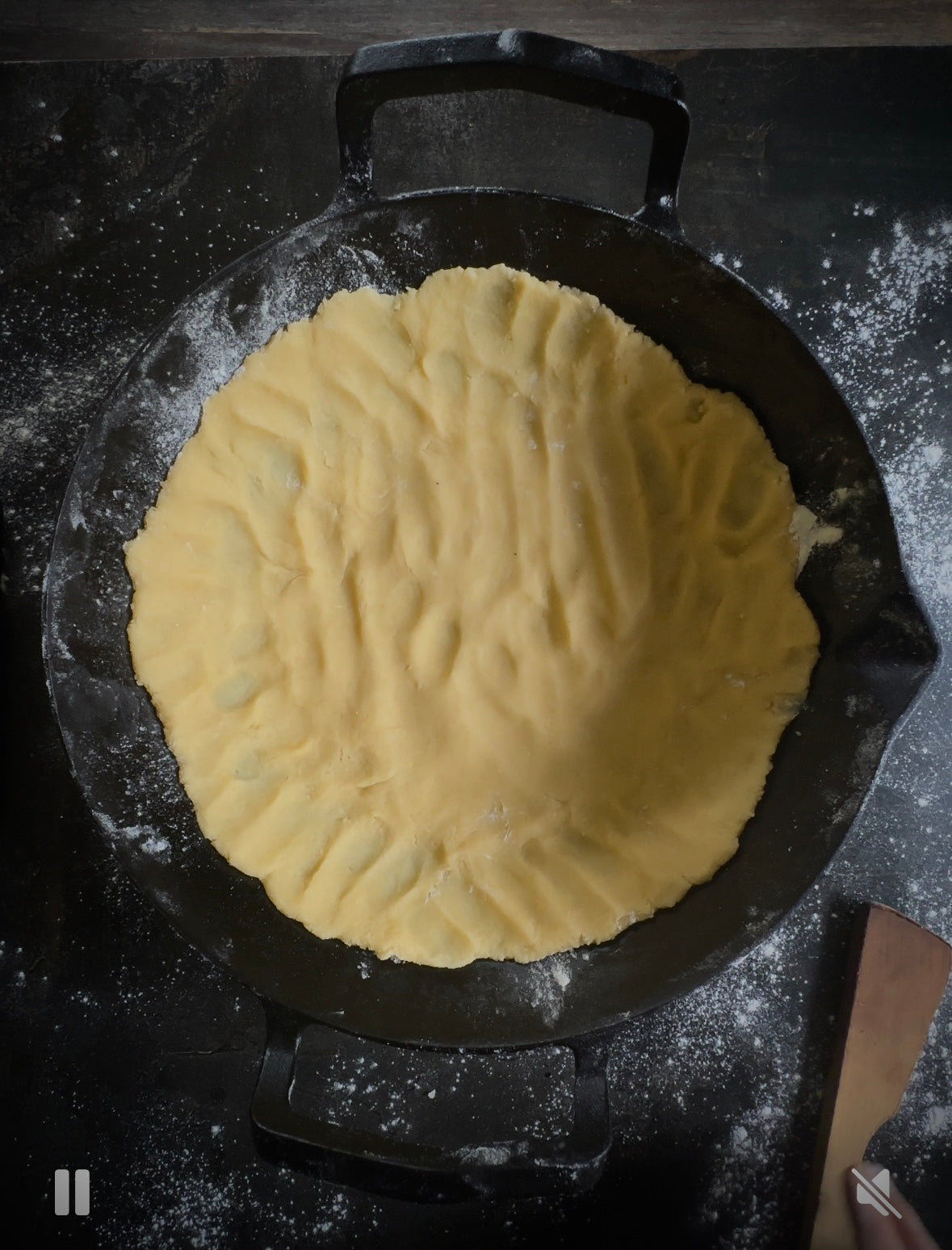 Thoroughly grease your Takumi Wok with butter and push the larger pastry half evenly into the wok using your hands. It should come within 2 inches of the rim of the wok.