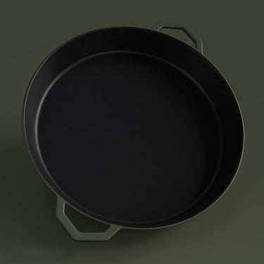 Our largest enamelled skillet turns big meals into simple ones with steady, even heat across a generous surface. Satin enamel for strength, easy care, and colour that lasts. No seasoning. Soap-friendly. Works on any heat source, indoors or out.